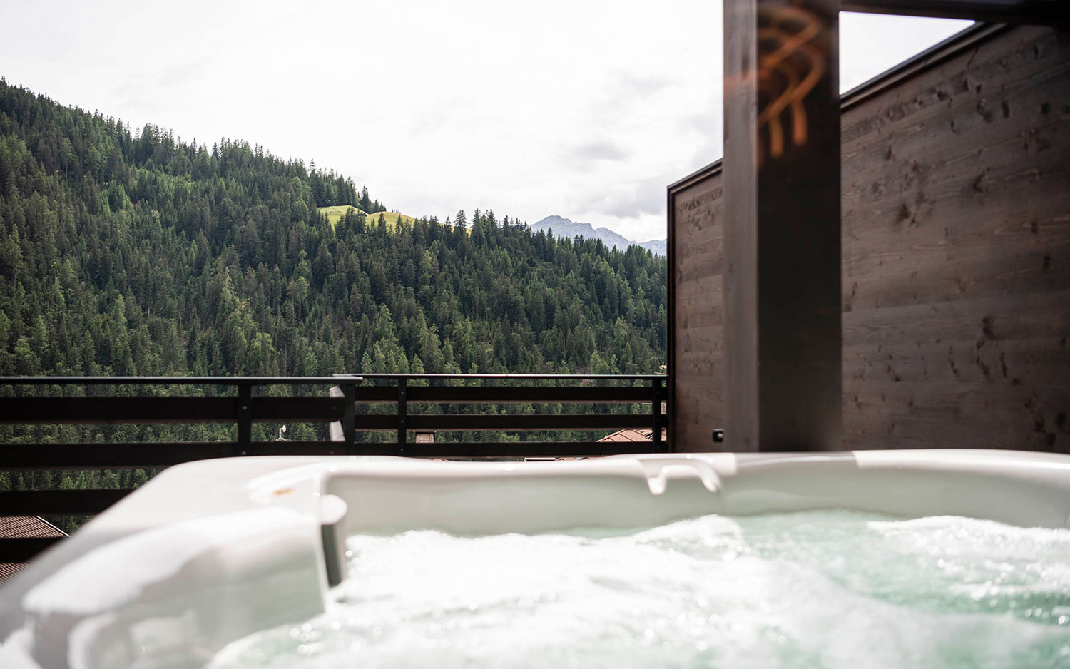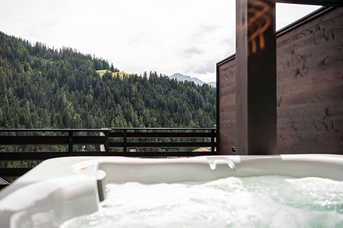 Erleben Sie höchsten Wohnkomfort für einen erholsamen Urlaub in Alta Badia. Für exklusive Wellnessmomente sorgen eine private Sauna oder ein Whirlpool mit Panoramablick.